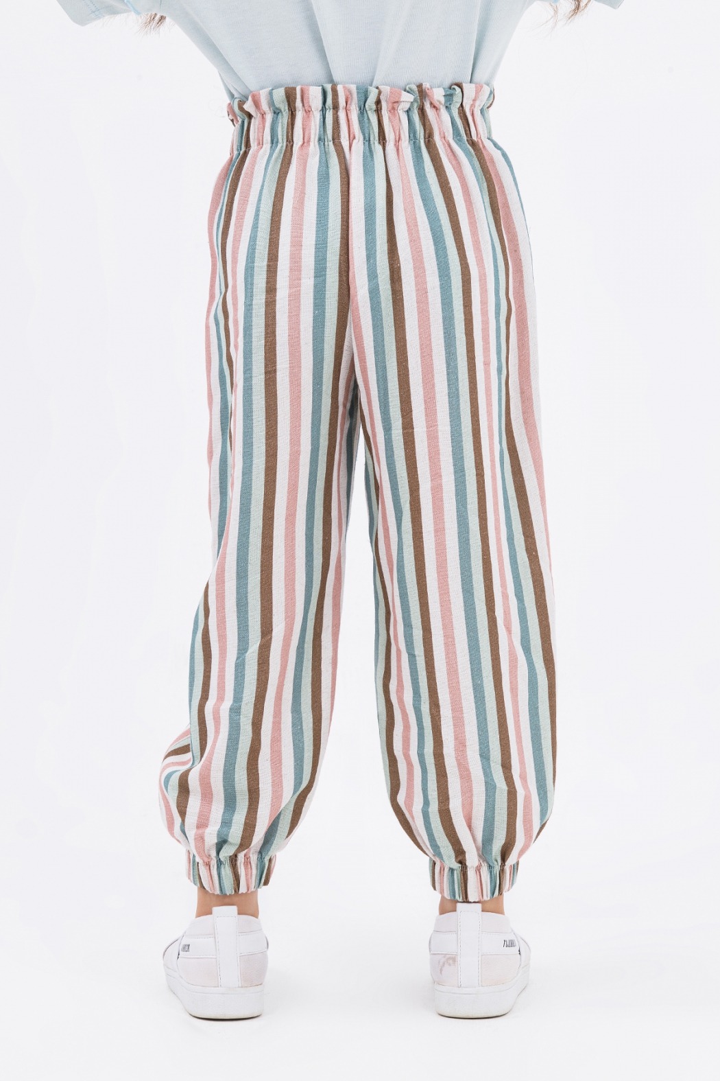 Летние брюки для девочки оптом. Трендовая модель летнего сезона. Брюки отлично стройнят фигуру, подходят для полных девочек. Спереди брюки оформлены вытачками и декоративным бантом, сзади пояс собран резинкой.