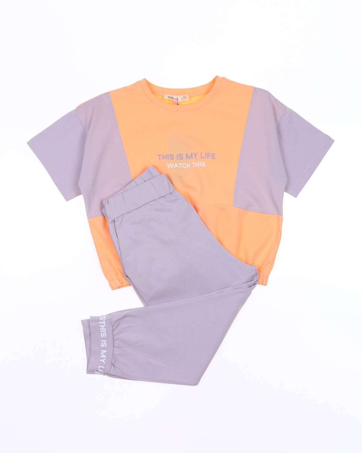 Костюм отлично сидит на фигурах разных типов. Футболка со спущенным рукавом на резинке и свободные брюки на манжетах  делают летний комплект оригинальным и стильным. Костюм выполнен из мягкого трикотажа кулирка.