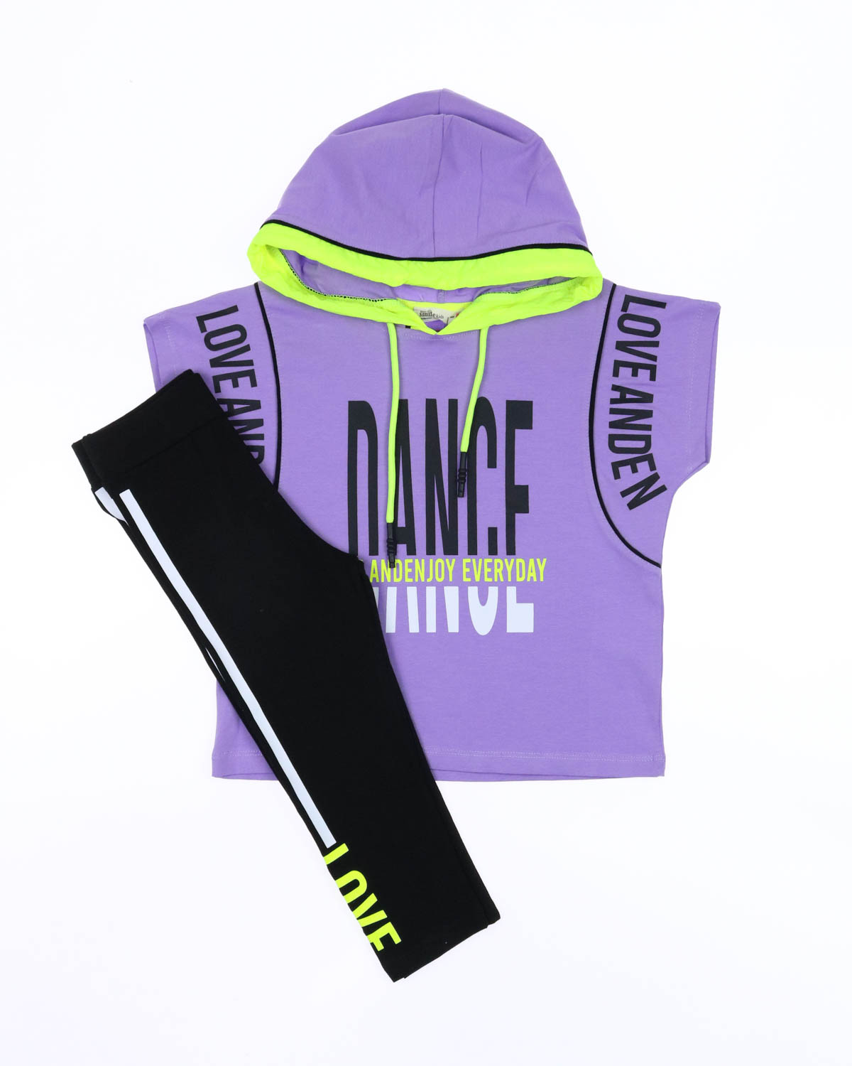 Костюм отлично сидит на фигурах разных типов. Укороченная футболка с капюшоном и бриджи делают летний комплект оригинальным и стильным. Костюм Smile оптом выполнен из мягкого трикотажа кулирка.