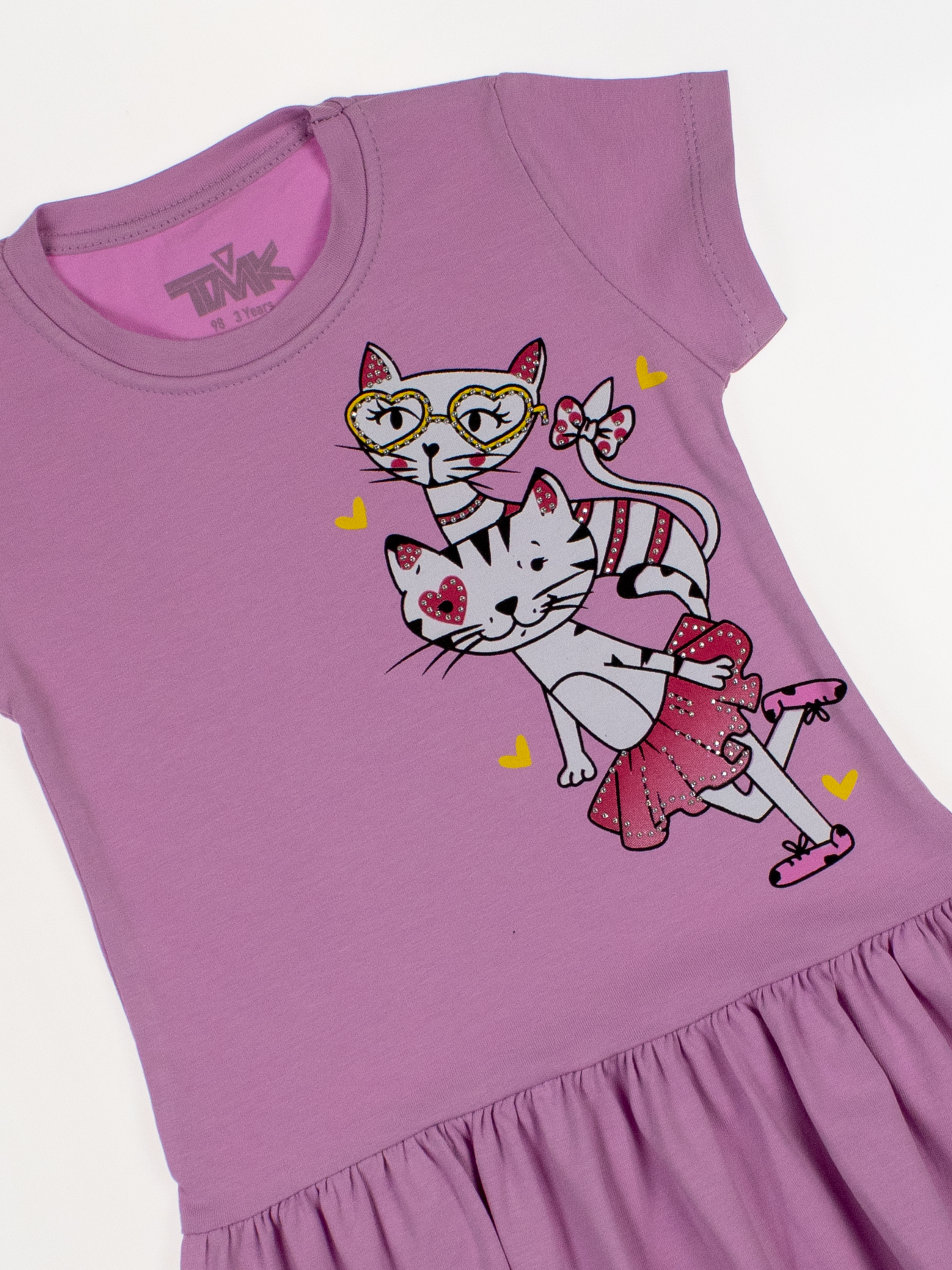 Платье для девочки оптом с коротким рукавом выполнено из трикотажного материала - кулирка. Платье для девочки  отличный вариант на каждый день, также подходит для похода в детский сад и даже в гости, что делает данную модель прекрасным дополнением детского базового гардероба.
