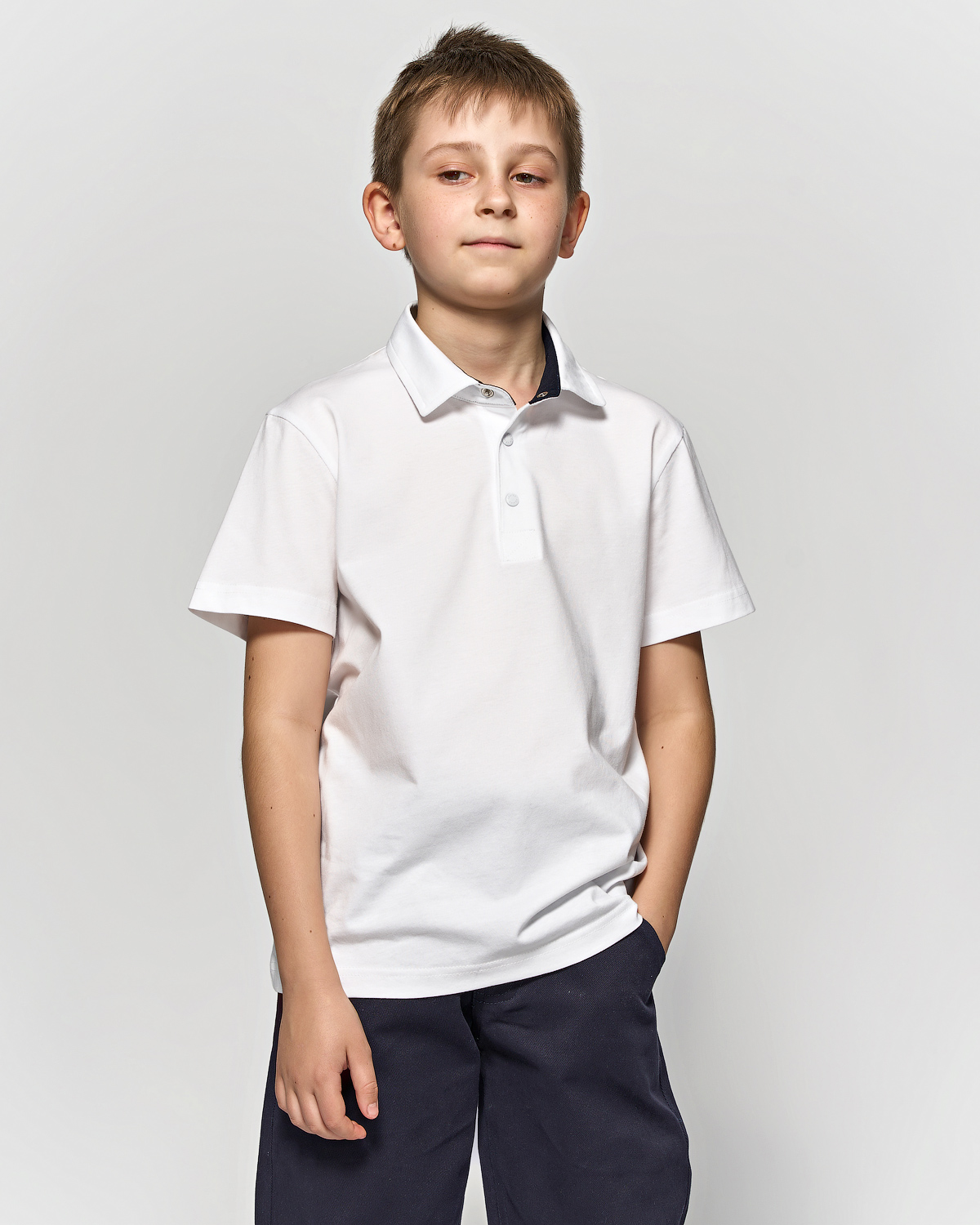 Однотонная рубашка- поло  для мальчика Cegisa оптом. Поло прямого кроя  с застежкой -кнопки. Изготовлена из натурального трикотажного хлопка. Модель с короткими рукавами пркрасный вариант для школы.
