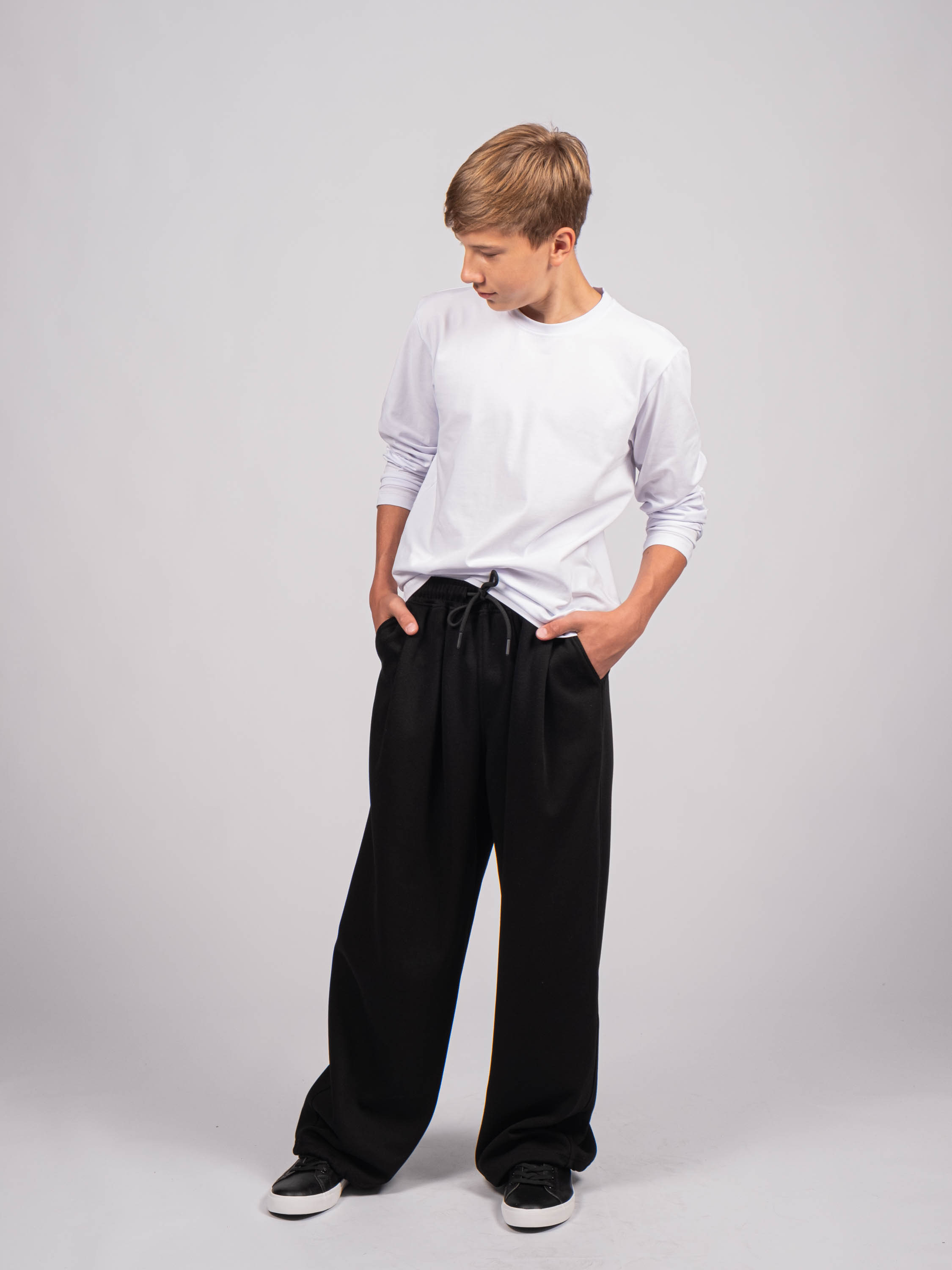 Школьные плотные брюки для мальчиков из трикотажа джерси TMK оптом  созданы специально для ценителей комфорта : на поясе с  резинкой,  два кармана. Широкие, с регулируемой кулиской внизу, брюки-одни из самых актульных фасонов. Штаны отлично подойдут  на каждый день.