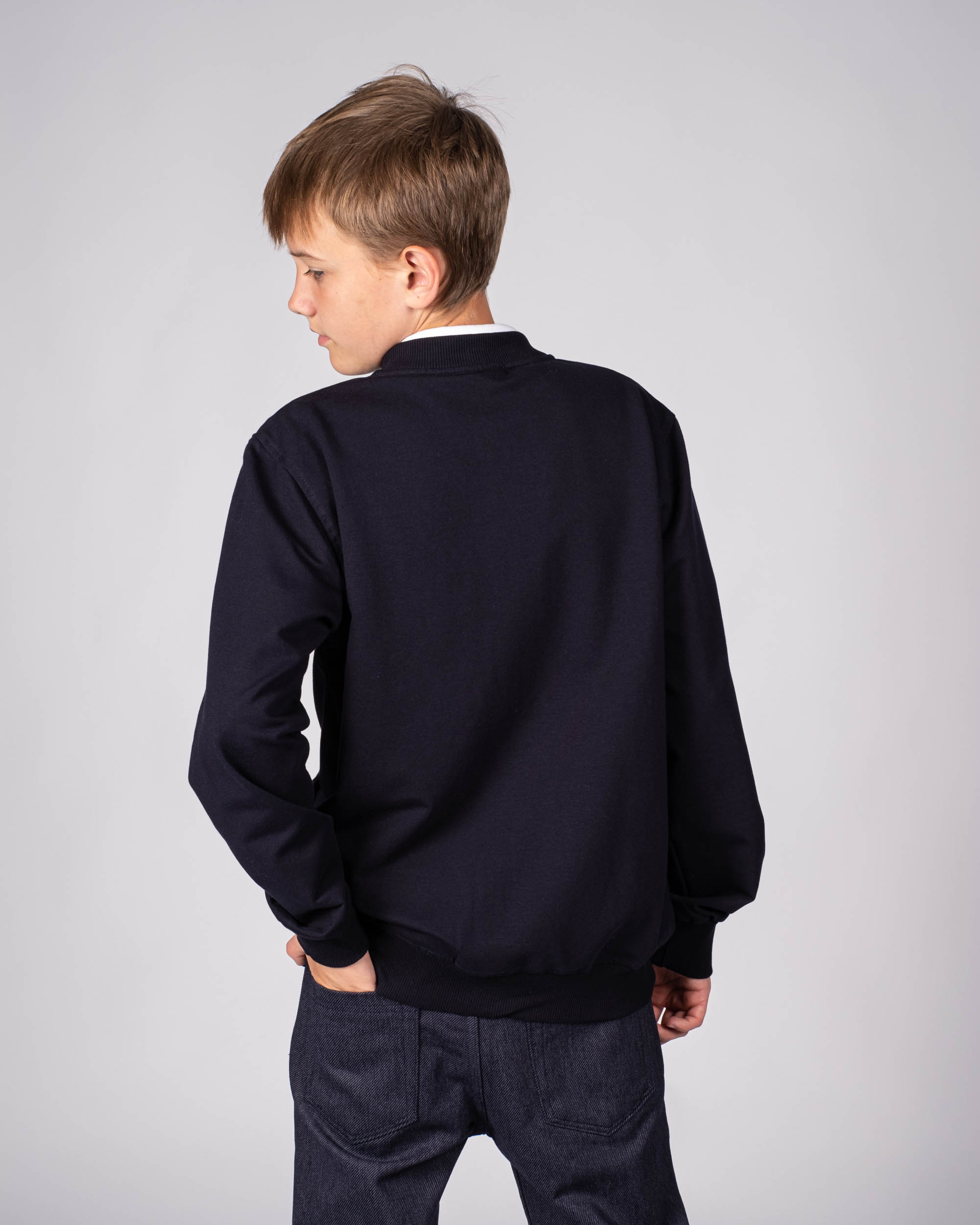 Трикотажный бомбер Cegisa для мальчика оптом. Выполнен из смесовой ткани, в составе которой натуральный хлопок с добавлением полиэстера. Воротник стойка. Низ изделия и рукава на трикотажном манжете. Вместительные карманы и разъемная застежка - молния. Хорошо сохраняет цвет и форму при длительной носке и после многократных стирок. Прекрасно будет смотреться как школьная форма.