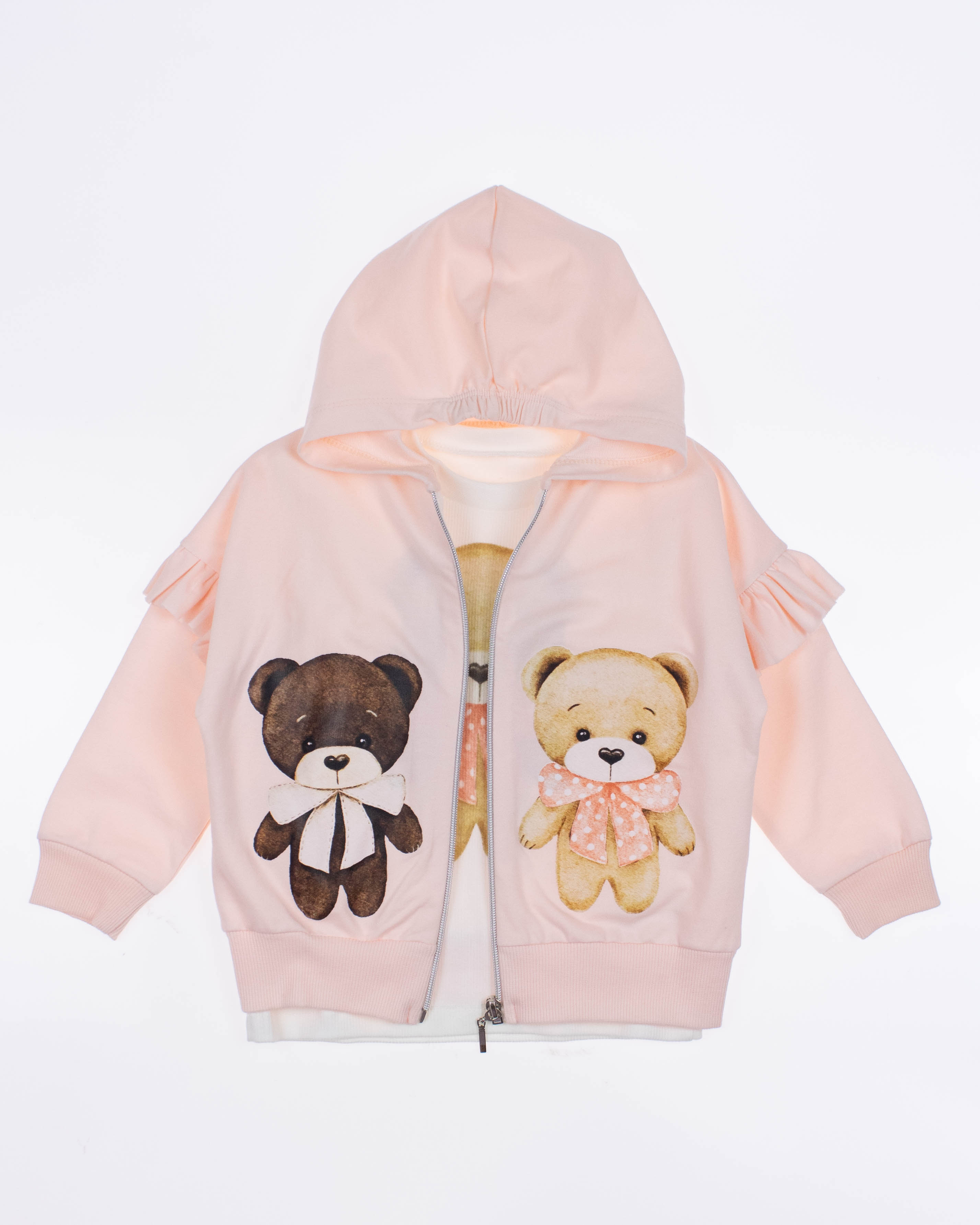 Костюм NEON для маленькой девочки оптом, состоит из трех предметов. Толстовка и брюки выполнены из хлопкового трикотажа футер (петля), лонгслив из мягкого трикотажа "лапша". Не упустите возможность приобрести качественные и модные ясельные костюмы оптом производства Турция. Сделайте заказ прямо сейчас и обеспечьте малышу комфорт и стиль в одежде!