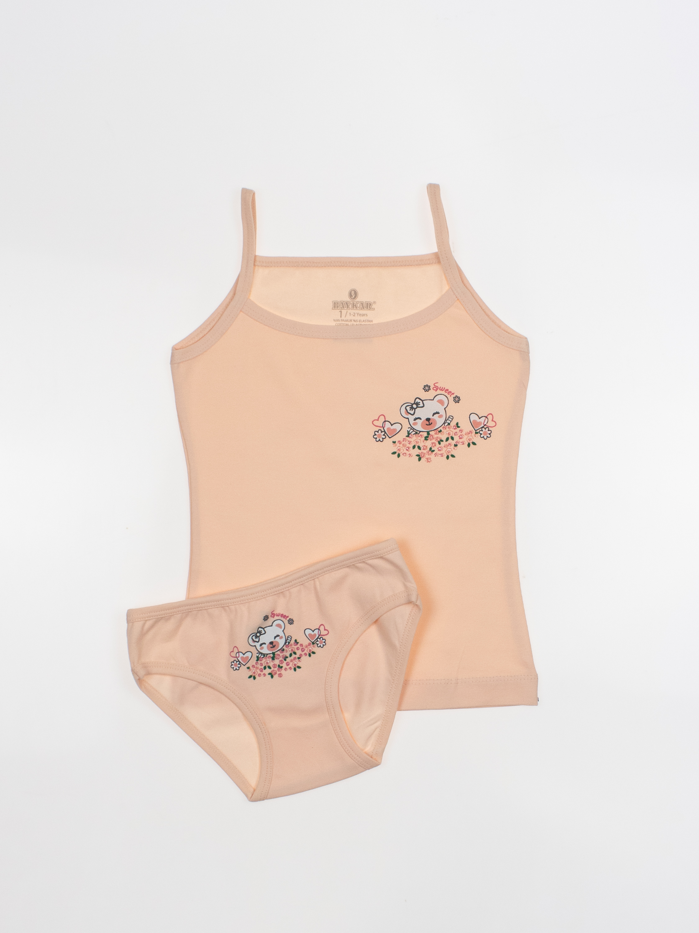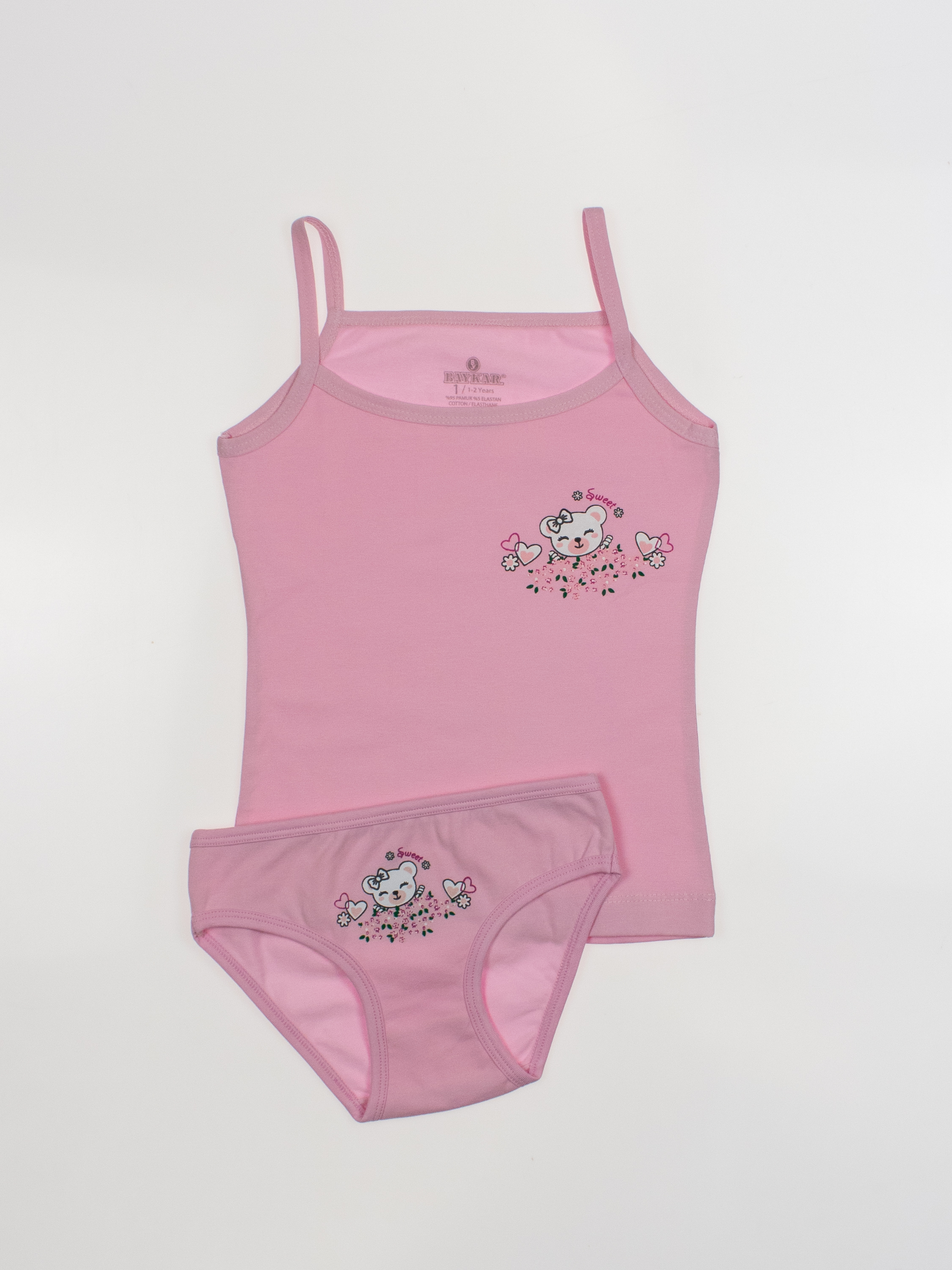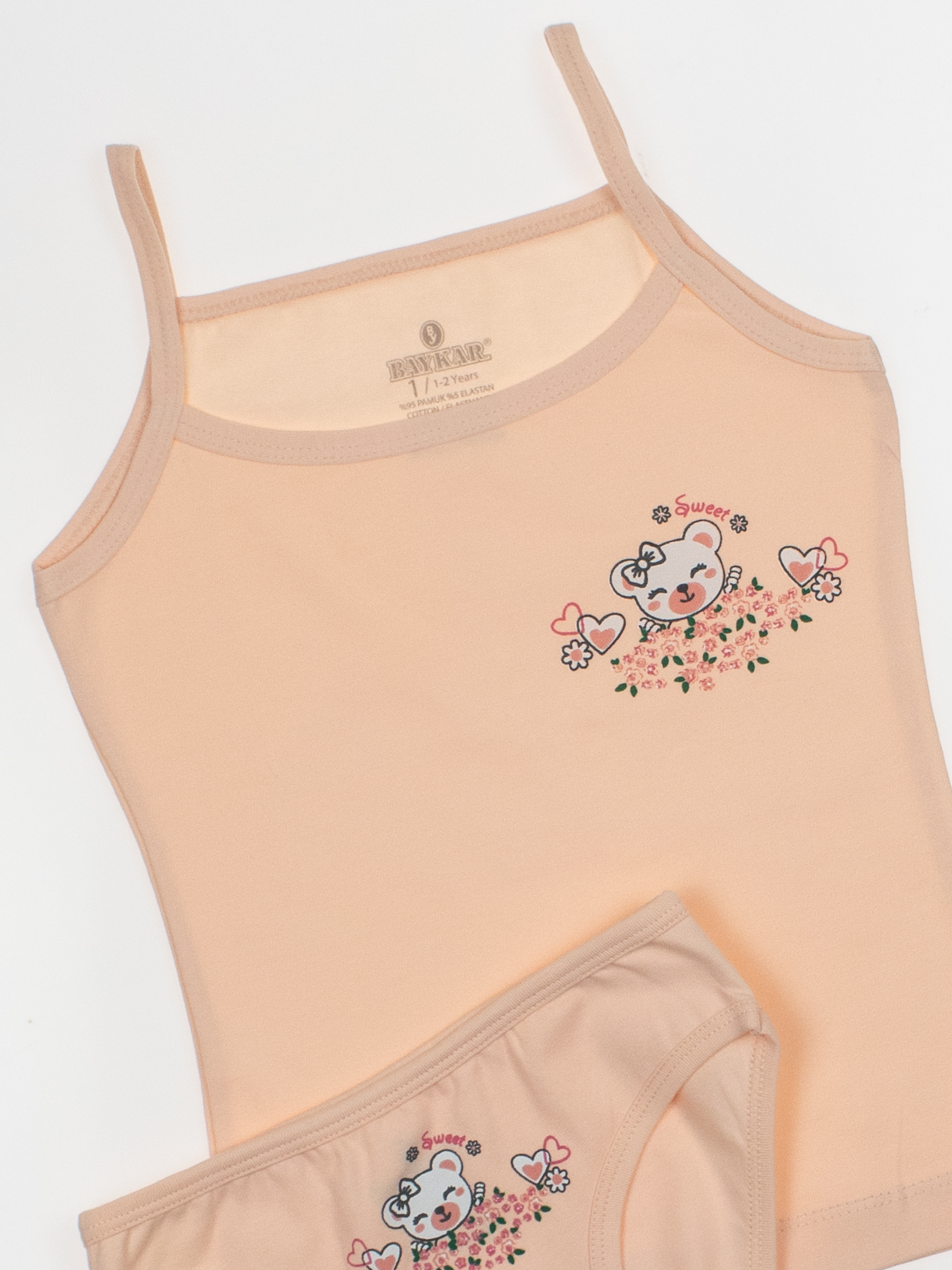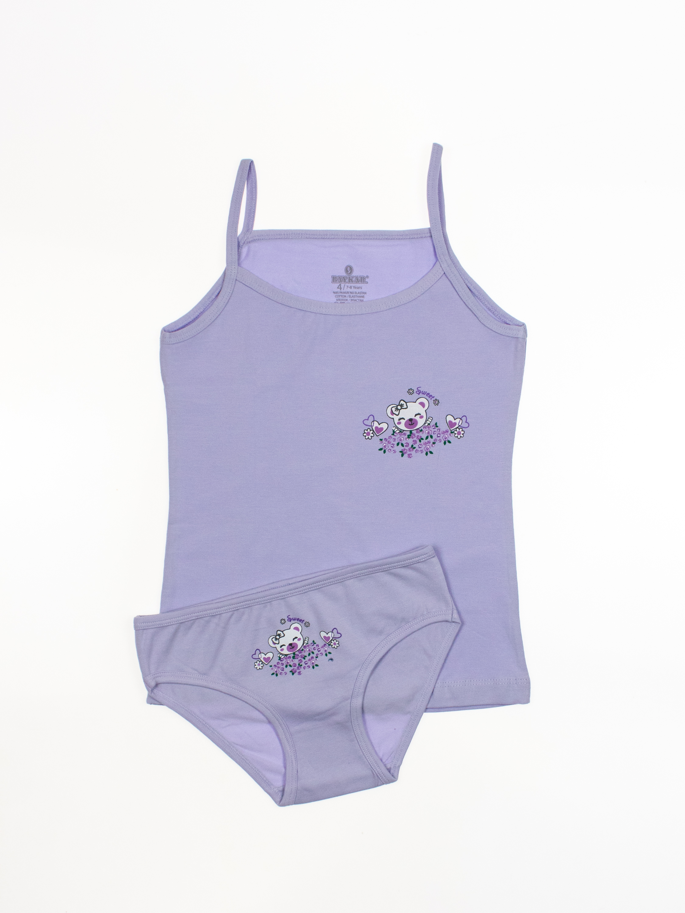 Костюм для деочки  от турецкого бренда BAYKAR - это гарантия комфорта, практичности и стильного дизайна. Изделия изготовлены из качественного хлопкового трикотажного полотна с добавлением прочной эластановой нити, не требуют особого ухода, не линяют и не растягиваются после стирки. Особенности моделей - классический крой, популярные расцветки и принты - делают комплект универсальными в носке:  можно использовать как нательное белье или домашнюю одежду.