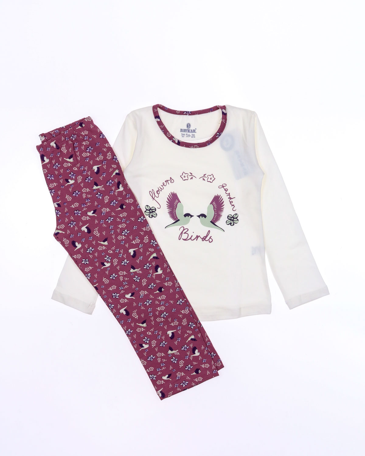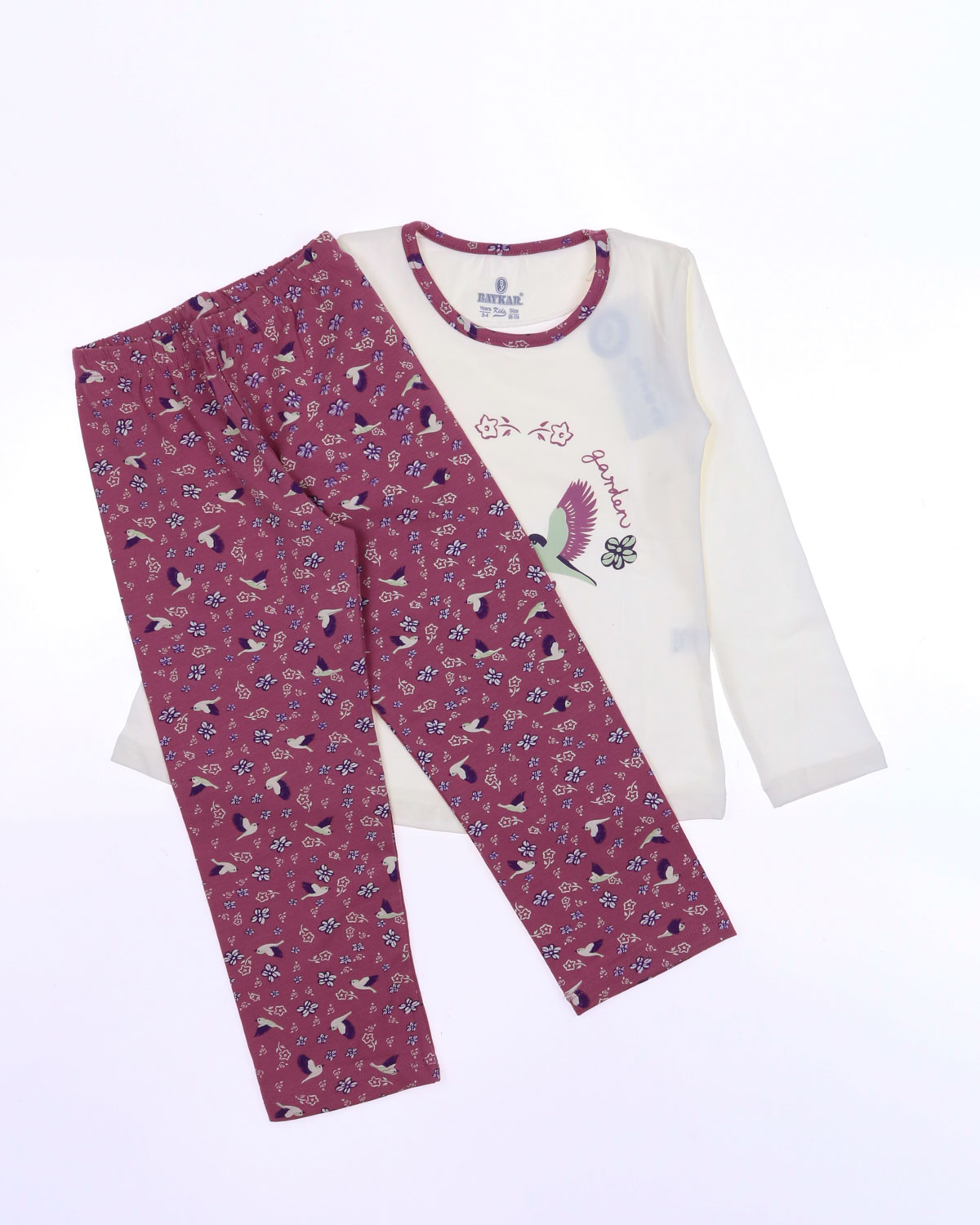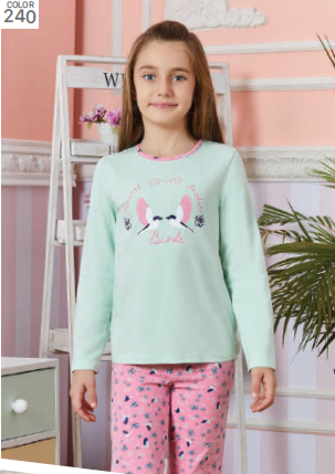 Пижама BAYKAR для девочки оптом с длинными рукавами и прямыми брюками без манжетов. Поверхность пижамки не закатается и не покроется пилями,  благодаря высокому качеству хлопка. Небольшое добавление эластана не позволит изделию сесть и не даст вытянуться.