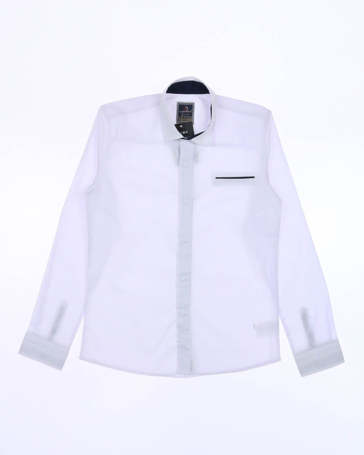 Прямая модель рубашки CEGISA с длинными рукавами и классическим отложным воротничком. Застёжка на кнопки, декоративный карман на груди. Идеальное решение для школьной формы и повседневного гардероба.